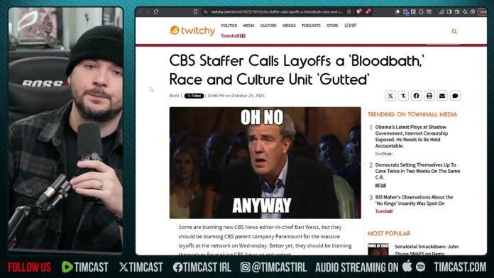 news1todaysnewsW1winner CBS Just NUKED Its Staff, CUT Woke Race Department After Bari Weiss Joins Company | Tim Pool By Americas Trusted News - November 2, 2025 0 10 FacebookTwitterPinterestWhatsApp IMAGE ABOVE FROM VIDEO BELOW TOP COMMENTS FROM VIDEO BELOW America as a nation is not woke. The woke are a minority. Amazing, cut off USAID and all the “media” companies are in hard times…